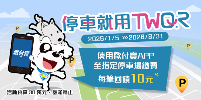 停車就用歐付寶TWQR,筆筆回饋10元!